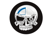 EMBLEMA DE CALOTA CAVEIRA E OSSOS UNIVERSAL Todos os Veiculos Papel: Cromado Resinado - Cor Preto 69 mm - 4 un - R$ 35,20