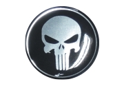EMBLEMA DE CALOTA CAVEIRA O JUSTICEIRO UNIVERSAL Todos os Veiculos Papel: Cromado Resinado - Cor Preto 55 mm - 4 un - R$ 26,40
