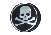 EMBLEMA DE CALOTA CAVEIRA E OSSOS UNIVERSAL Todos os Veiculos Papel: Cromado Resinado - Cor Preto 60 mm - 4 un - R$ 30,80