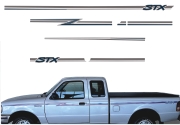 FAIXA LATERAL E TRASEIRA STX FORD Ranger STX 95 Cabine King Papel: Transparente Sem Resina - Cor Grafite 435 x 8 cm - 1 kit(3) - R$ 580,00