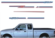 FAIXA LATERAL E TRASEIRA STX FORD Ranger STX 95 Cabine King Papel: Transparente Sem Resina - Cor Azul 435 x 8 cm - 1 kit(3) - R$ 580,00