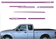 FAIXA LATERAL E TRASEIRA STX FORD Ranger STX 95 Cabine King Papel: Transparente Sem Resina - Cor Lilas 435 x 8 cm - 1 kit(3) - R$ 580,00