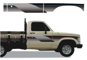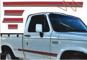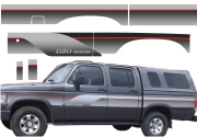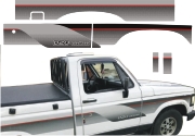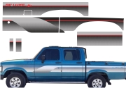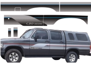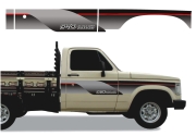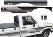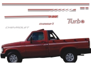 EMBLEMA AUTOMOTIVO CHEVROLET GM D20 Conquest 95 Papel: Transparente Sem Resina - Cor Vermelho 53 x 4,9 cm - 1 un - R$ 32,72