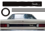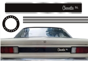 EMBLEMA AUTOMOTIVO CHEVETTE GM Chevette SL 1976 (rodas) Papel: Cromado Sem Resina - Cor Preto 11,6 cm - 5 un - R$ 78,00