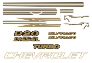 EMBLEMA AUTOMOTIVO D20 SILVERADO TURBO DIESEL 01/ GM D20 Silverado 00/ Papel: Cromado Resinado - Cor Dourado Embalagem - 1 kit(5) - R$ 317,80