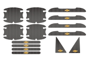 PROTETOR DE MACANETA E PORTA CHEVROLET GM Linha Chevrolet Papel: Adesivo Branco Resinado - Cor Fibra de Carbono Embalagem - 1 kit - R$ 188,00