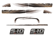 EMBLEMA AUTOMOTIVO S10 FLEXPOWER (grande) GM S10 09/11 Papel: Diversos Sem Resina - Cor Verde e Preto Embalagem - 1 kit(5) - R$ 208,00