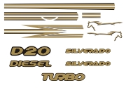 EMBLEMA AUTOMOTIVO D20 GM D20 Silverado 00/ Papel: Diversos Res.e S/ Res. - Cor Dourado Embalagem - 1 kit(6) - R$ 362,80