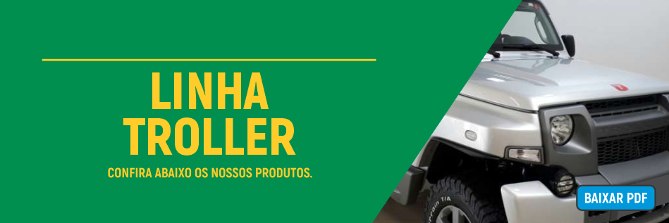 EMBLEMA AUTOMOTIVO TROLLER TROLLER Troller 15/19 (grade) Papel: Adesivo Branco Resinado - Cor Verde 46,7 x 3,3 cm - 1 un - R$ 68,00