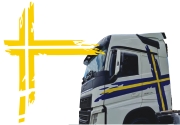 FAIXA LATERAL VOLVO FH PERFORMANCE VOLVO Volvo FH Performance Papel: Transparente Sem Resina - Cor Azul e Amarelo 274 x 340 cm - 1 par - R$ 912,70