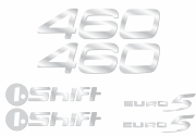 EMBLEMA LINHA PESADA EURO 5 460 I.SHIFT VOLVO Volvo FH (cabine) Papel: Cromado Resinado - Cor Cromado 21,7 x 5,4 cm - 1 kit(6) - R$ 600,00