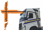 FAIXA LATERAL VOLVO FH PERFORMANCE VOLVO Volvo FH Performance Papel: Transparente Sem Resina - Cor Laranja e Preto 274 x 340 cm - 1 par - R$ 912,70
