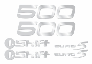 EMBLEMA LINHA PESADA EURO 5 500 I.SHIFT VOLVO Volvo FH (cabine) Papel: Cromado Resinado - Cor Cromado 22 x 5,4 cm - 1 kit(6) - R$ 600,00