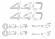 EMBLEMA LINHA PESADA EURO 5 440 I.SHIFT VOLVO Volvo FH (cabine) Papel: Cromado Resinado - Cor Cromado 21,7 x 5,4 cm - 1 kit(6) - R$ 600,00