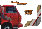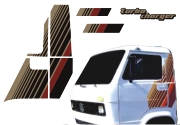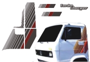 FAIXA LATERAL E FRONTAL TURBO CHARGER VOLKSWAGEN Volkswagen 7-100 e 8-140 1994 Papel: Adesivo Branco Sem Resina - Cor Padrao 85,4 x 117 cm - 1 kit(3) - R$ 404,00