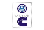 EMBLEMA LINHA PESADA MOTOR CUMMINS VOLKSWAGEN Caminhoes Volkswagen Papel: Cromado Resinado - Cor Branco 9 x 6,5 cm - 1 un - R$ 45,20