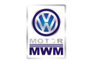 EMBLEMA LINHA PESADA MOTOR MWM VOLKSWAGEN Caminhoes Volkswagen Papel: Cromado Resinado - Cor Branco 9 x 6,5 cm - 1 un - R$ 45,20